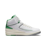 The Jordan 2 Retro "Lucky Green" is a fresh take on the classic silhouette, blending sporty style with a touch of heritage. This sneaker features a crisp white leather upper, accented with vibrant Lucky Green details, giving it a standout look.