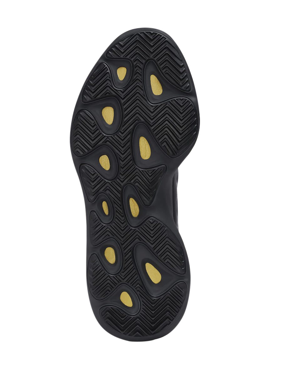 There Yeezy Boost 700 V3 Alvah is adorned with a monochrome black upper, made up of a mixing upper mesh, neoprene And Primeknit. We find zebrars semi translucent on the lateral sides, taking up the form of the patterns present on the models of Yeezy 700 V2. The base is surmounted by a fluorescent TPE cage, highlighting the singular aspect of this new model. The whole rests on a thick sole with technology adiPRENE.