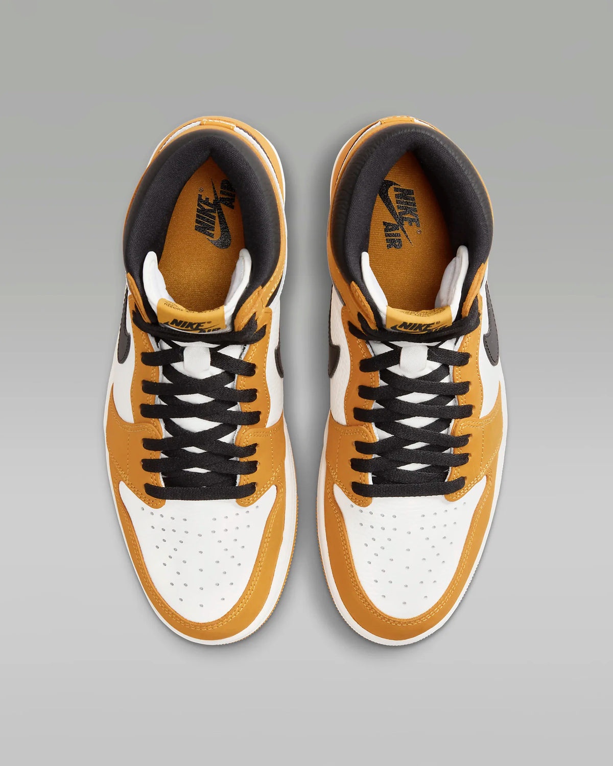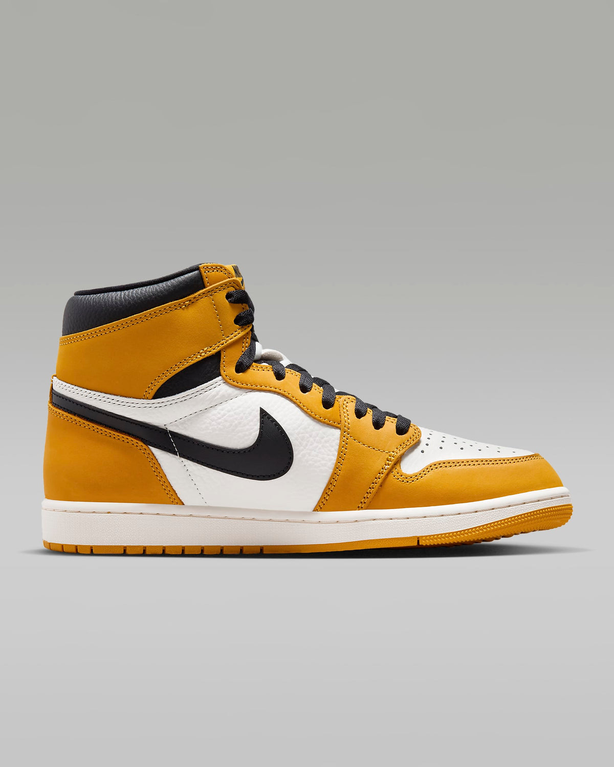 A classic, remastered. This AJ1 balances Yellow Ochre and Black against a tumbled Sail leather backdrop for a clean, sophisticated finish. Refined details and retro branding bring it all together: old-meets-new style as smooth as MJ's fadeaway.