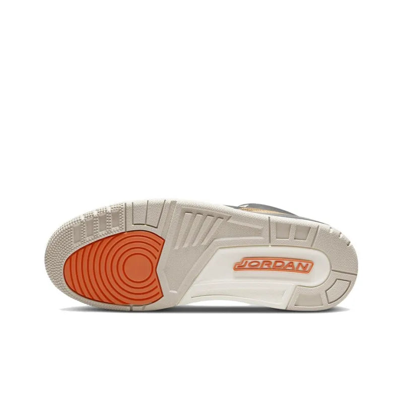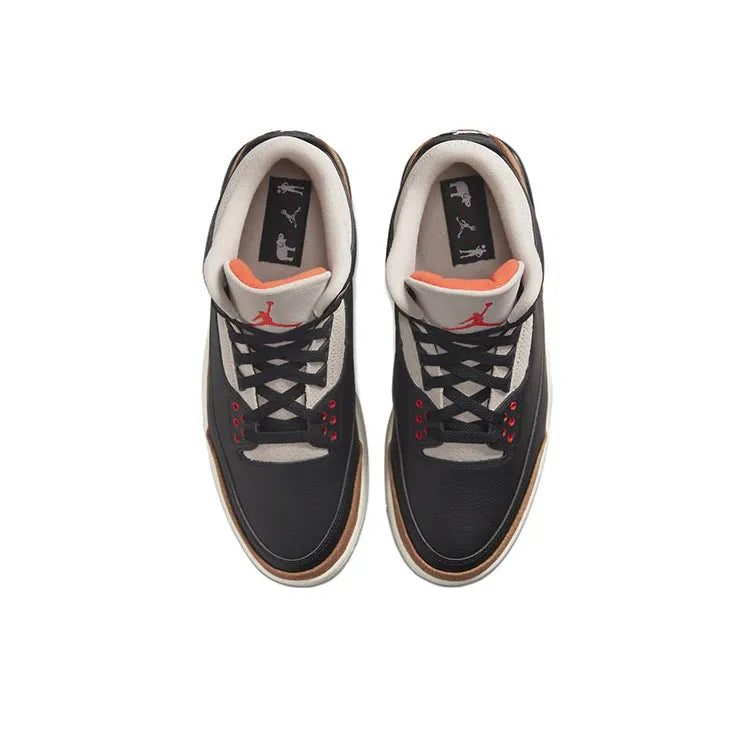 The sneaker is equipped with a visible Air unit in the heel for cushioning, providing both style and comfort. The "Desert Elephant" theme adds a unique twist to the classic Jordan 3 aesthetic, making it a standout piece for collectors and sneaker enthusiasts alike. Overall, it embodies the perfect blend of heritage and modern flair.