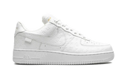 There Nike Air Force 1 Low Louis Vuitton White presents itself through a magnificent upper monochrome upper in White flexible veal leather overcome by the LV monogram. Brandings and inscriptions on the inner side of the pair, typical of Virgil Abloh, appear in a color Golden. Creation presented during the parade Spring-Summer 2022 man, this model is designed by hand in the manufacture Louis Vuitton has Artico, in Italy.