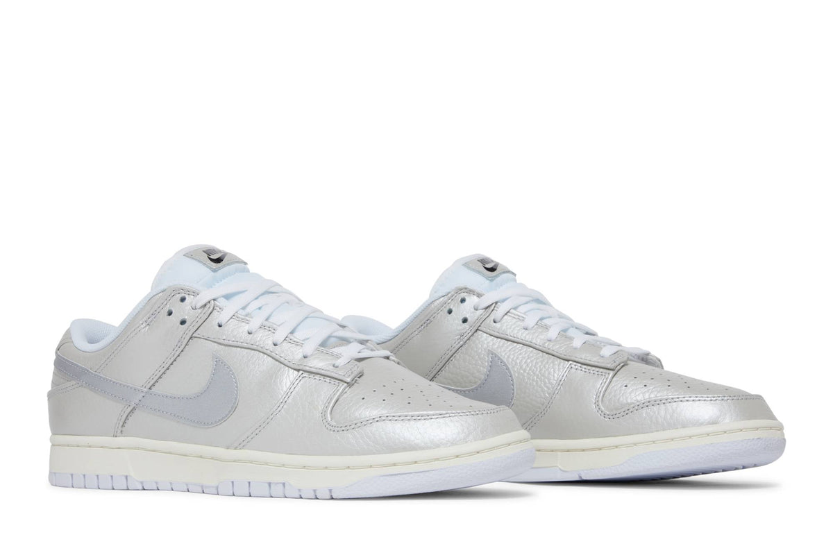 Introducing the Nike Dunk Low Metallic Silver sneakers, a stylish and versatile addition to your sneaker collection. These Nike sneakers feature a sleek metallic silver upper with a low-top design, perfect for everyday wear. With their iconic Swoosh logo and comfortable fit, these sneakers are sure to turn heads. Add a touch of sporty elegance to your outfit with the Nike Dunk Low Metallic Silver sneakers.