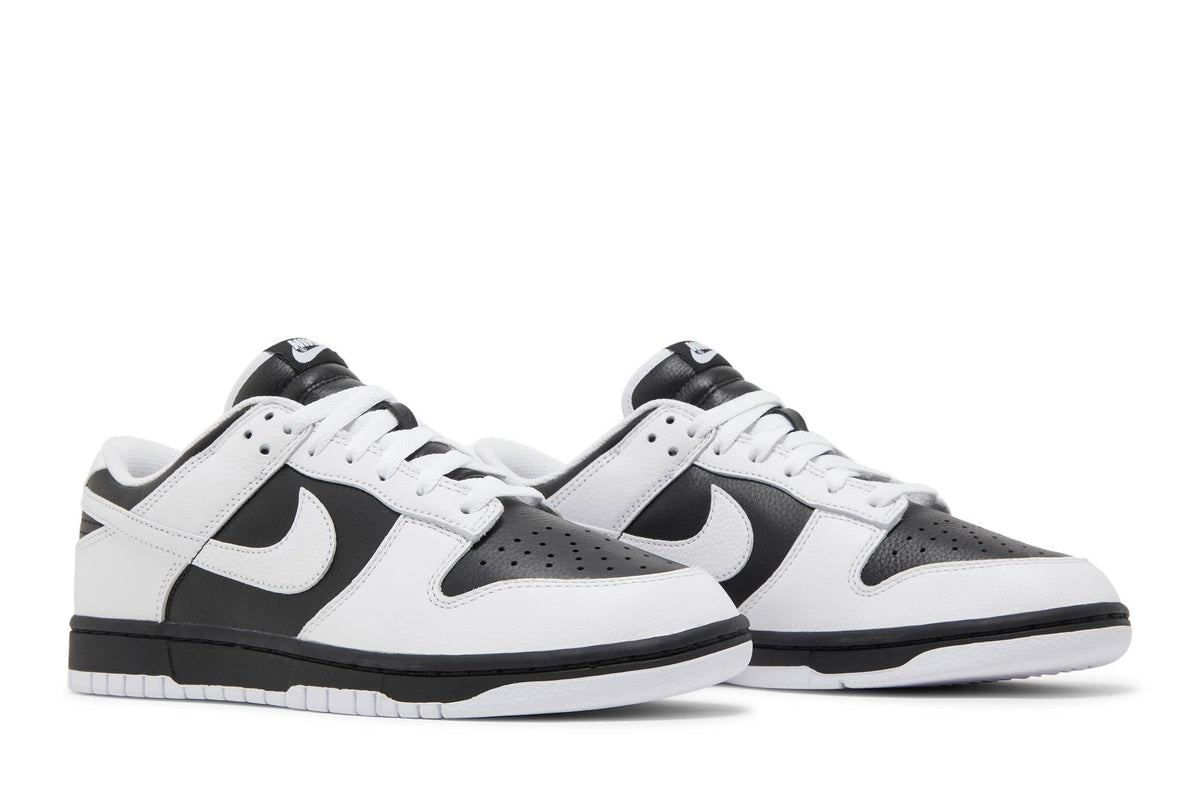 Introducing the Nike Dunk Low Reverse Panda sneakers. These stylish and comfortable Nike sneakers feature a sleek black and white color scheme, with a black upper and white accents. With their low-top design and durable construction, these sneakers are perfect for everyday wear. Elevate your sneaker game with the Nike Dunk Low Reverse Panda.