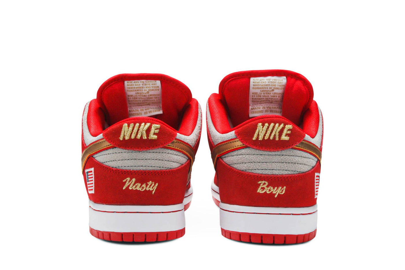 The Nike SB Dunk Low Nasty Boys, also known as the Nasty Boys, is a stylish sneaker in a vibrant red color. This Nike product is perfect for those looking for a combination of style and comfort. With its low-cut design and durable construction, the Nasty Boys are suitable for both skateboarding and everyday wear. Show off your love for Nike with these eye-catching and trendy sneakers.